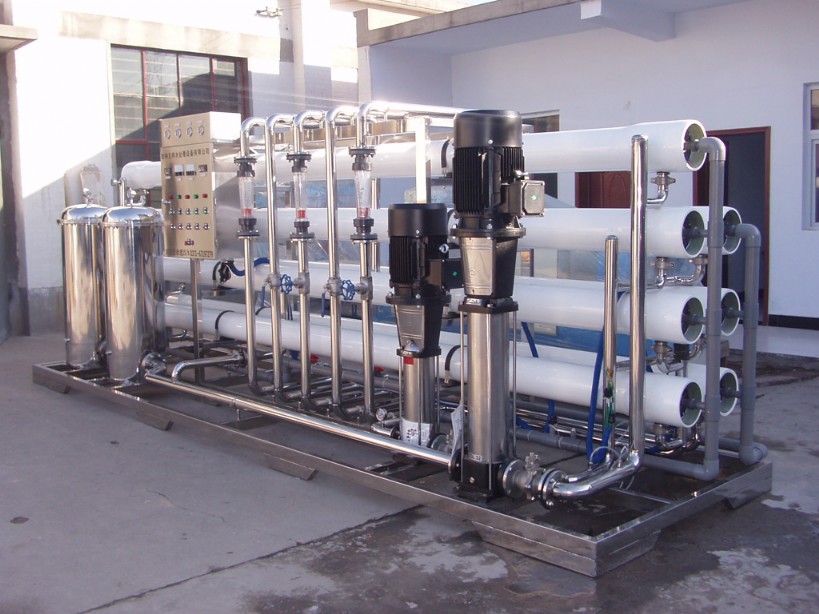 反渗透是一种借助于选择透过(半透过)性膜的工力能以压力为推动力的膜分离技术,当系统中所加的压力大于进水溶液渗透压时,水分子不断地透过膜,经过产水流道流入中心管,然后在一端流出水中的杂质,如离子、有机物、细菌、病毒等,被截留在膜的进水侧,然后在浓水出水端流出,从而达到分离净化目的。